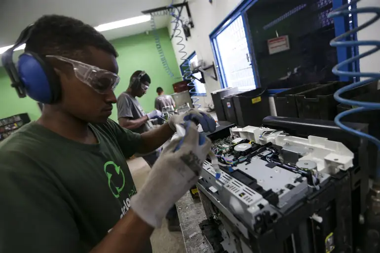 Computadores e eletrônicos são recondicionados para reciclagem e doações na Central de Recondicionamento de Computadores (CRC), no Distrito Federal. (Marcelo Camargo/Agência Brasil)