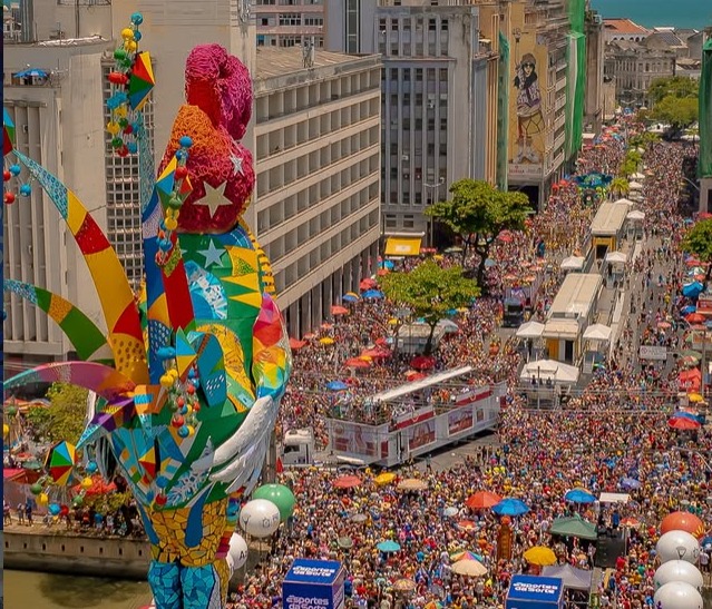 Paralelamente, a sustentabilidade passou a integrar o bloco como eixo conceitual, educativo e estético. O tema “Frevo no Planeta Galo”, que agitou o Carnaval de 2026, reforçou essa diretriz ao incorporar o uso de materiais recicláveis e reaproveitados na confecção de esculturas e elementos cenográficos, associando arte popular, educação ambiental e economia circular.