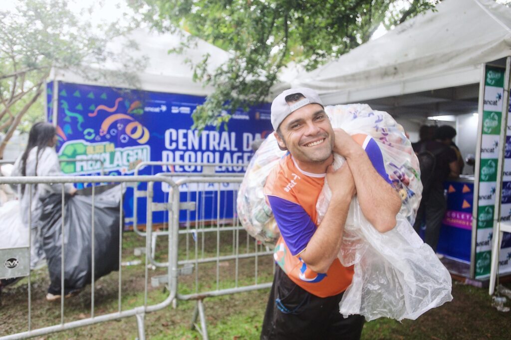 O sistema de coleta incluiu pesagem imediata, registro de volumes e pagamento no local, estimulando tanto a destinação correta de resíduos quanto a inclusão social e a geração de renda para esses trabalhadores durante a folia carnavalesca.
